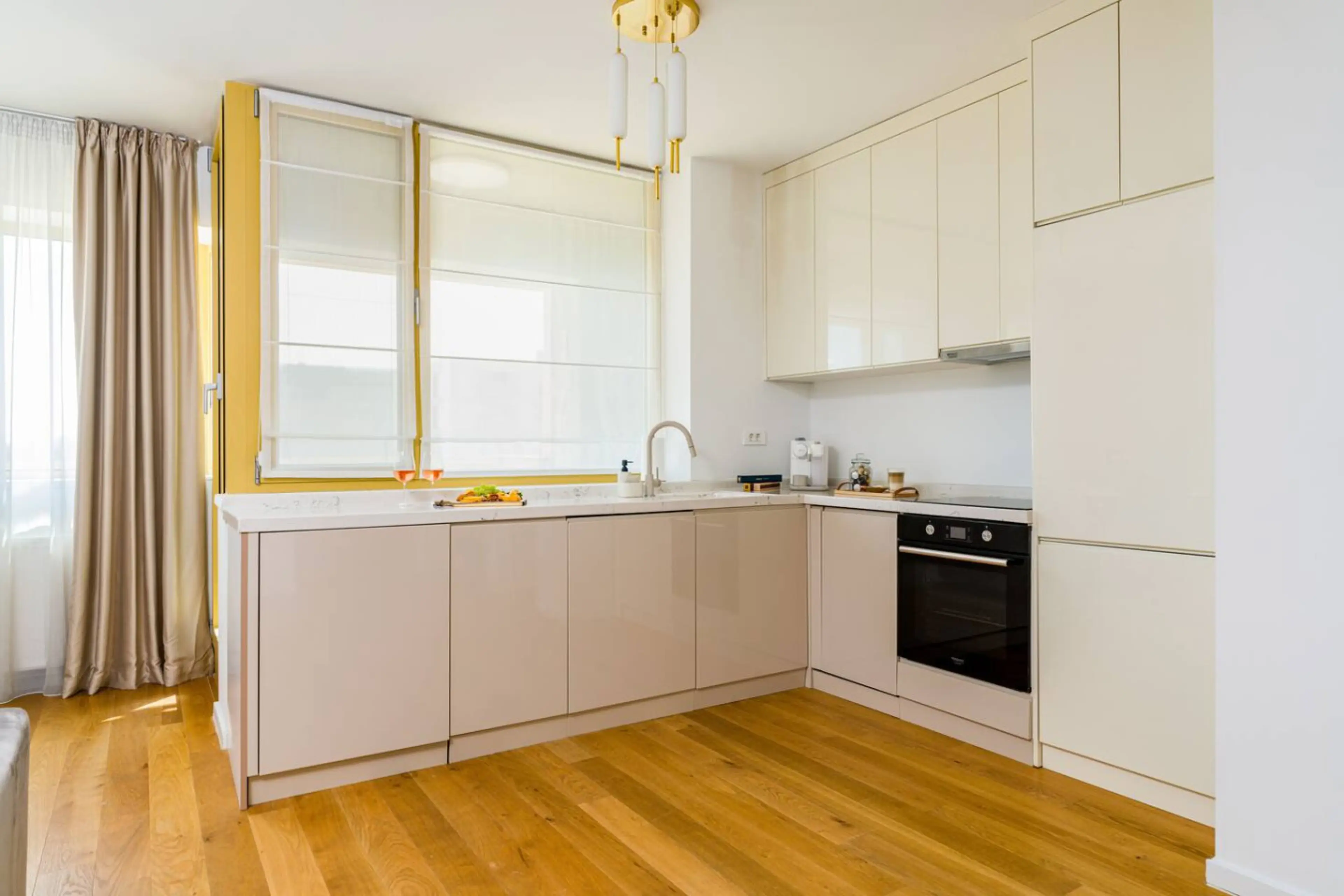 Positive: Everything was clean and prepared for our stay. Supermarket very close to the location. Very nice italian restaurant right outside the apartment complex.